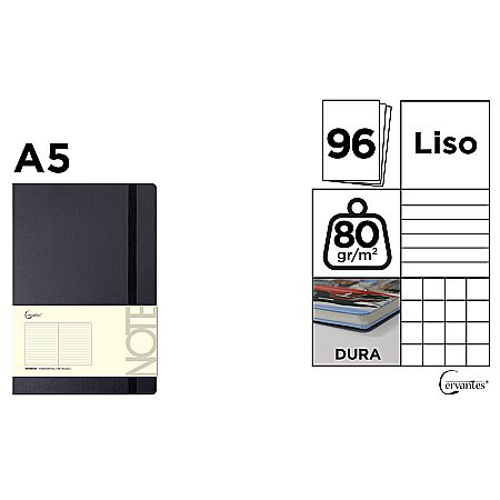 Notebook A5 Lined 96 Sheets Black 80gr + Elastic