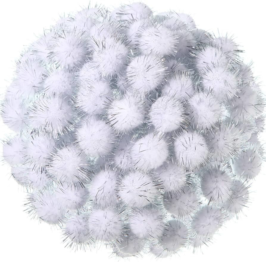 Pompoms 30pcs White 20mm Glitter Craft for all